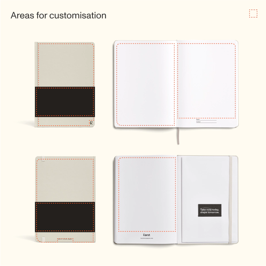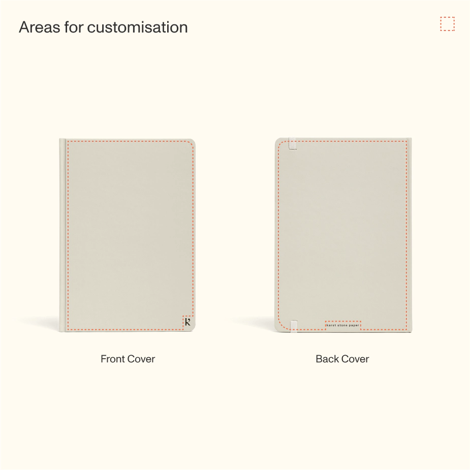 Customise our sustainable, design-led notebooks with your own branding and message. Our team of skilled designers, account managers, and craftspeople will look after you with personalised service and unrivalled attention to detail, all to make sure your products delight, surprise, and inspire your team, clients, and customers.