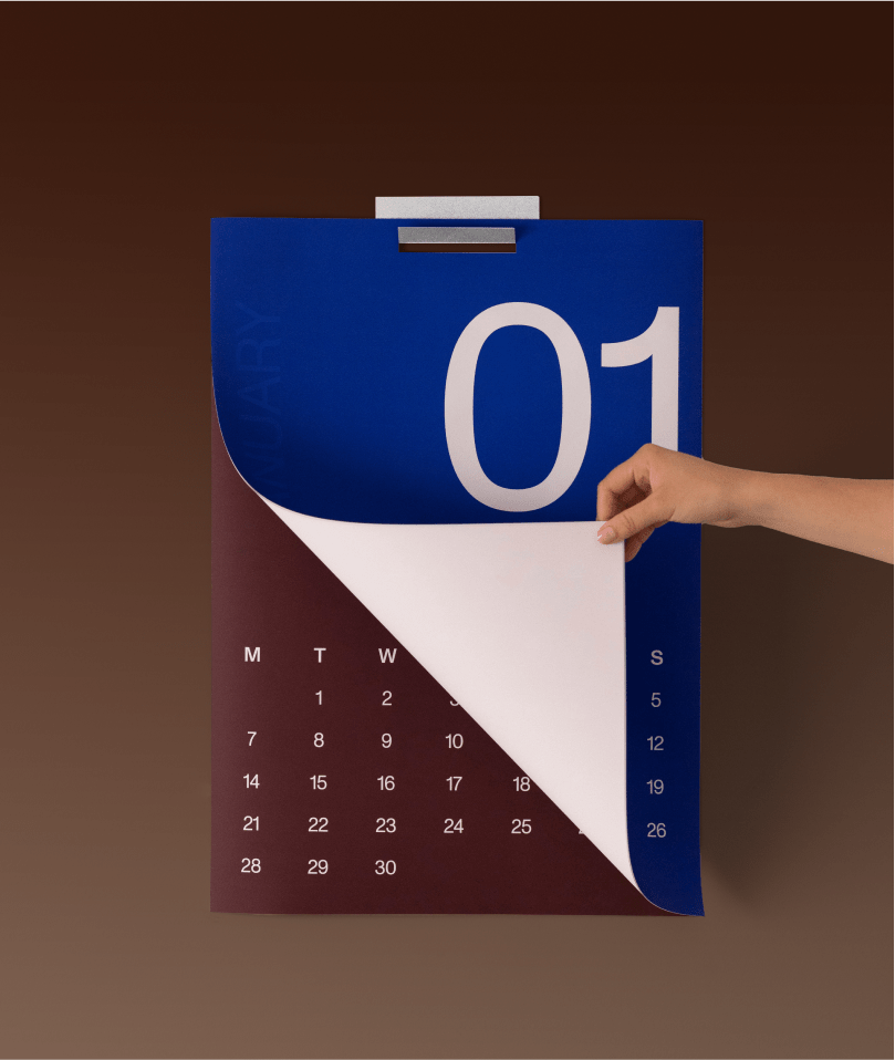 A calendar built to be noticed. Clean pages that organize your time visually - and turn blank walls into intentional ones.