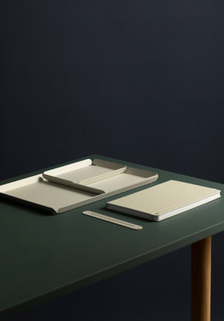 This Stone Desk Goods bundle includes all the essentials to set up your workspace: an A5 Lined Hardcover Notebook, all three desk tray sizes, a 6 inch ruler and a pen tray.
