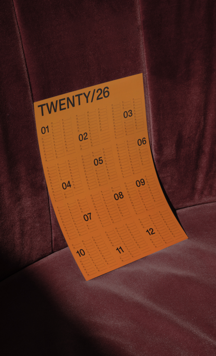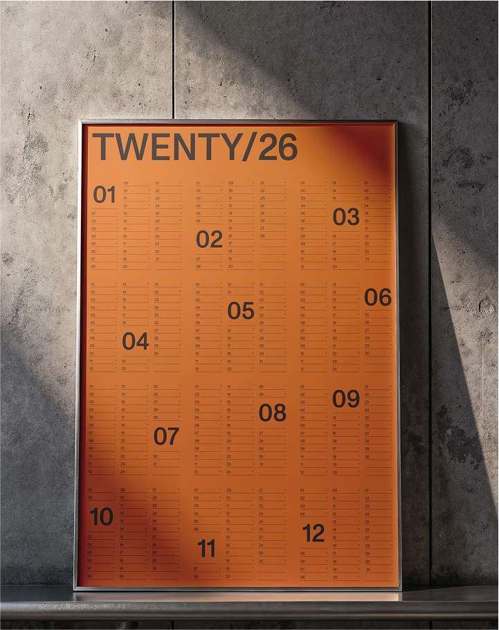 High-impact typography and clean lines make this calendar as visually appealing as it is practical, fitting seamlessly into any space.
