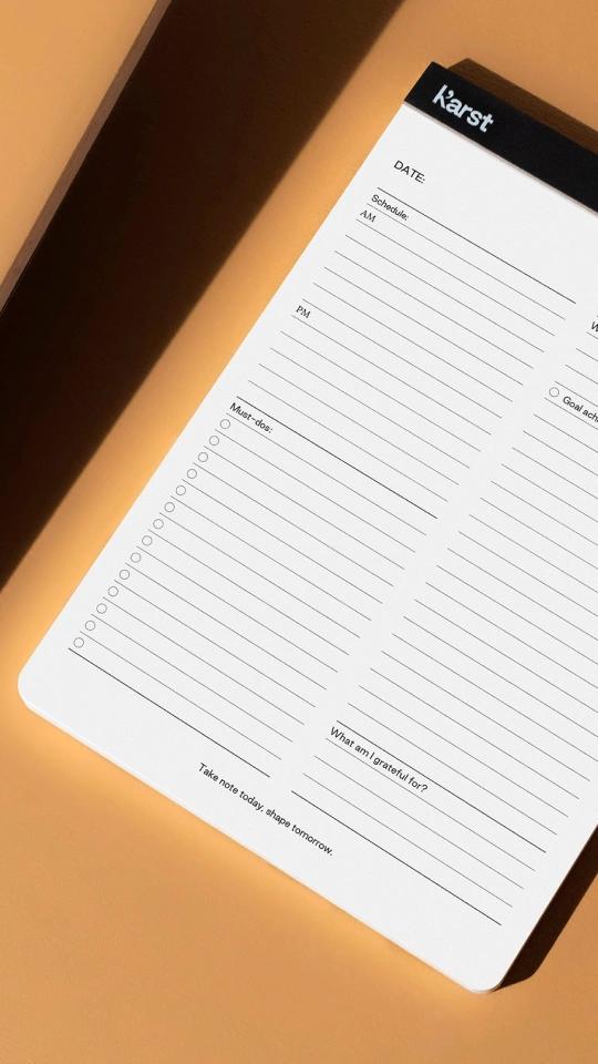 Our tree-free Daily Action Pads are an essential for any desk. Available in A5 and A4 sizes, these undated all-in-one Daily Action Pads track your schedule, tasks, goals and notes every day. With a top flip binding, write or draw comfortably from any angle, and remove each sheet with ease along the micro-perforation. Our unique, eco-friendly stone paper material is acid-free, bright white, and waterproof, with a premium look and feel.