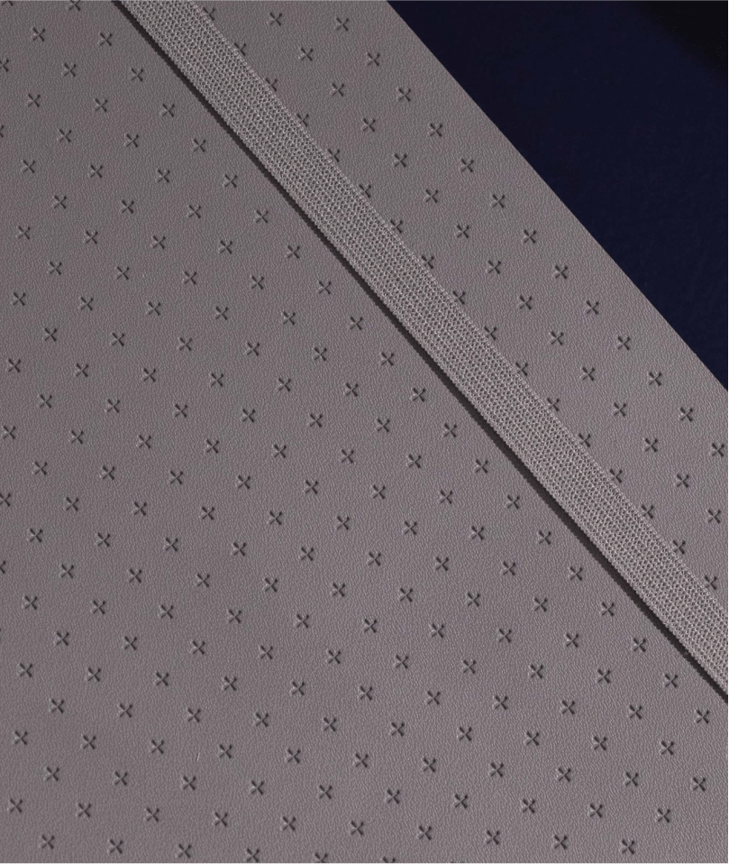 Spacious pages for serious work, wrapped in a softcover that won't weigh you down. The debossed grey exterior adds visual distinction with its subtle grid pattern – setting it apart whether it's on a conference table or a job site.